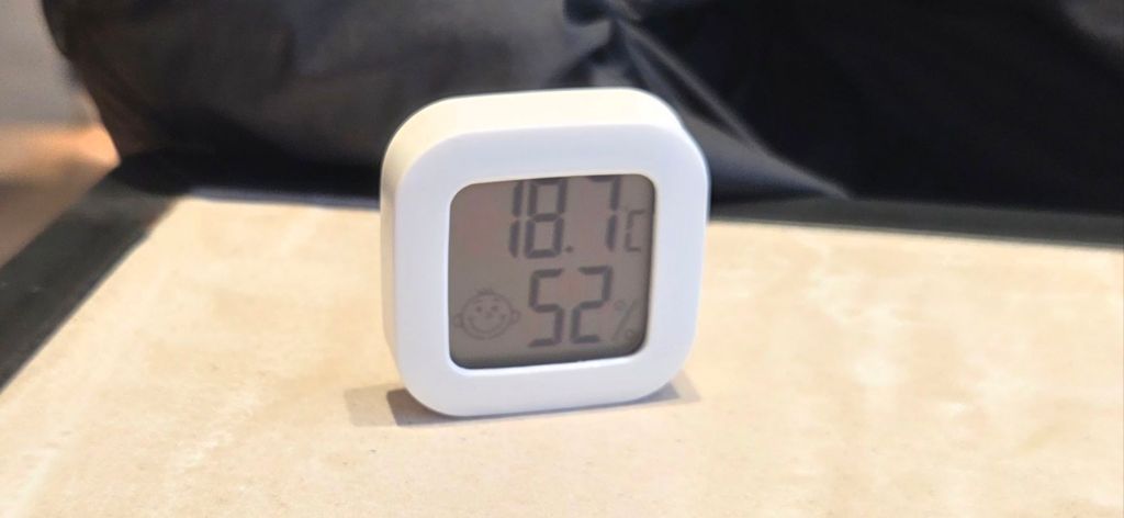Wondering how cold I really was, I bought a tiny thermometer on Amazon. The answer: 14° Celsius (57° Fahrenheit).