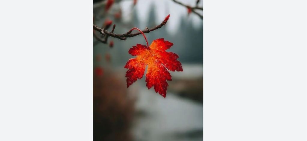 In Canada I loved walking in the woods in the fall, watching the leaves drift down. Here’s a red one, perhaps in the last moments of clinging before letting go. Happily, my wanderings were not punctuated by upturned shouts of “C’mon. Drop! I don’t have all day.”