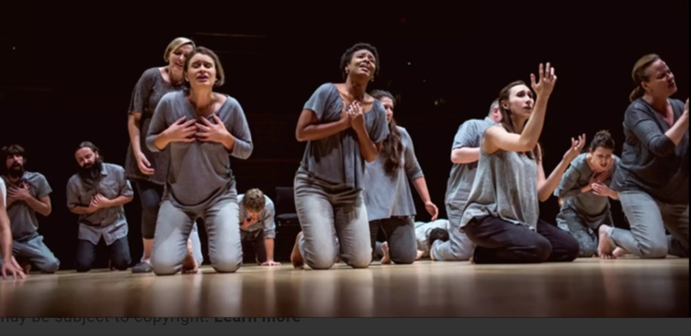 The twenty-one faces were so often contorted. The arms reached high … and low. Astounding harmonies came from all quarters of the stage. We the audience, I do believe, were stunned.