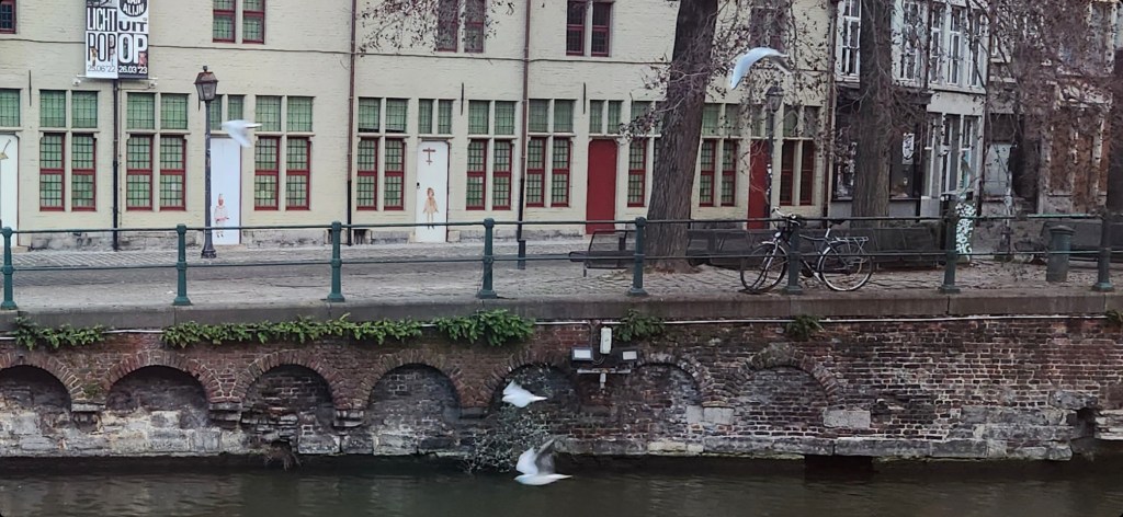 I suppose I’m the only one in town with a seagull fetish but that’s fine. I position myself at a table beside the river on the terrace of the ‘t Kanon pub and watch the show. Couples nearby gaze lovingly into each other’s eyes – I raise my face to the birdie sky.
