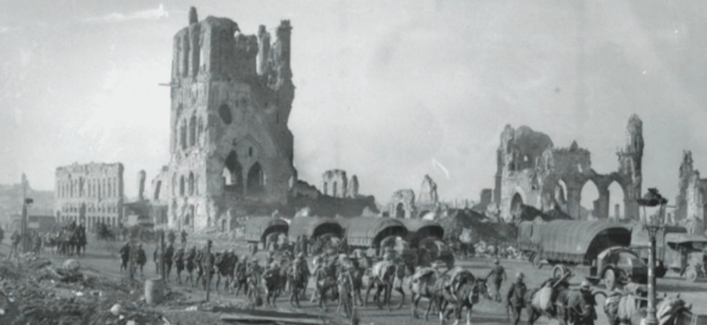 There is not a single half-acre in Ypres that is not sacred.  There is not a single stone which has not sheltered scores of loyal young hearts, whose one impulse and desire was to fight and, if need be, to die for England.  Their blood has drenched its cloisters and its cellars, but if never a drop had been spilt, if never a life had been lost in defence of Ypres still would Ypres have been hallowed, if only for the hopes and the courage it has inspired and the scenes of valour and sacrifice it has witnessed.