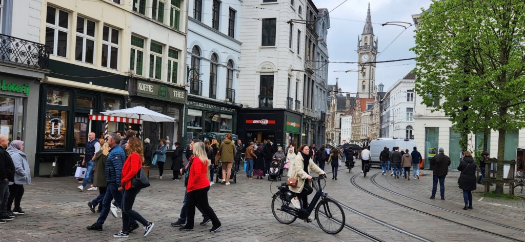 Here are the people of Ghent, going to and fro. Bicycles, toddlers, holding hands, shopping, lining up, walking in centrum … all of it.