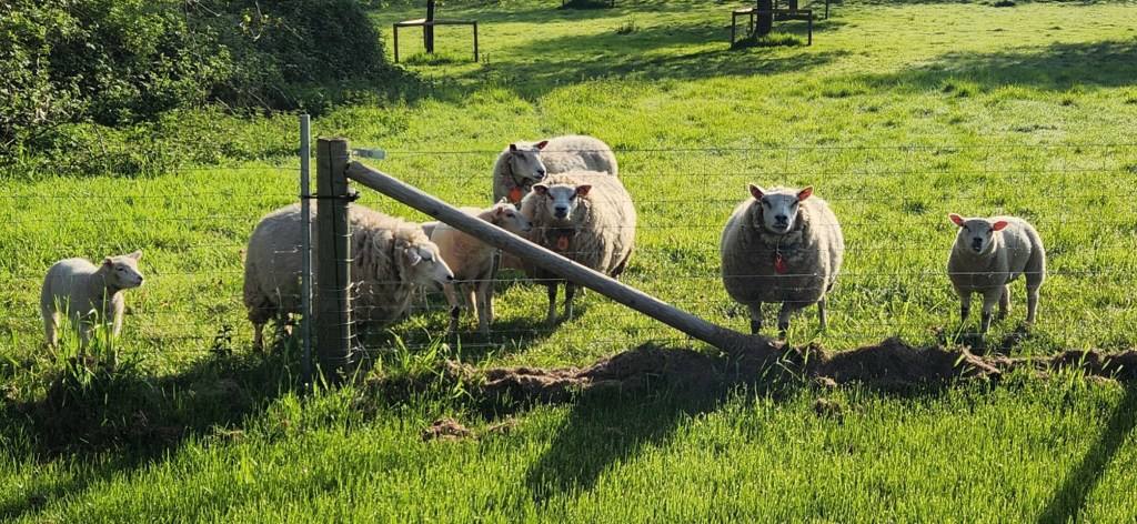 Now I’m sitting in the cement stands of KSV Maarkedal, the local football (soccer) team. I hear three sounds – cars on the freeway across the field, tweeting birds in the trees, and sheep grazing somewhere out of sight.