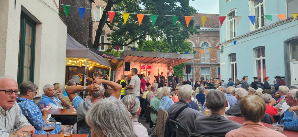 I sat with brand new friends, Flemish to the bone with a touch of English. I cradled my Duvel beer and Belgian hot dog. We laughed. Hundreds of us were crammed into the little square, welcoming the music of a local ragtime group.