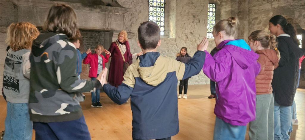 A tour guide brought a group of kids to the centre of a room. She asked them to join hands, and then a simple song and dance: