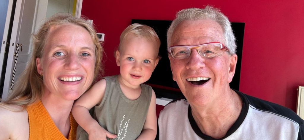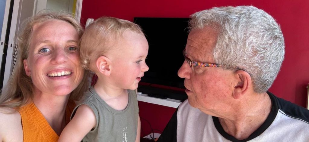 Here’s a second photo. Julie’s one-year-old son Raphaël and I were in contact. You could say we were doing the practice. This little kid is already a teacher. He’s opening hearts.
