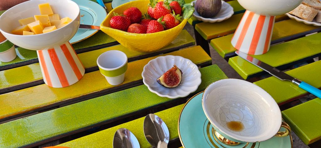 My neighbour Dirk invited us for breakfast yesterday. He’s unique in the world, having immersed himself in theatre and the other arts, and having returned so much joie de vivre to those around him. Like Sabrine and me.