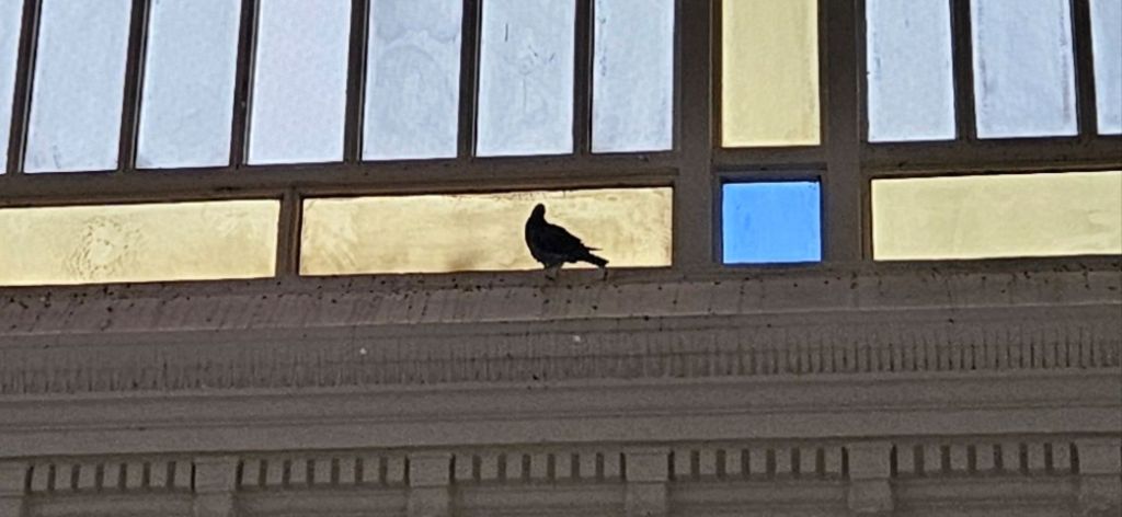 All that disappeared when the pigeon took off and landed on a high windowsill. And the woman walked away.