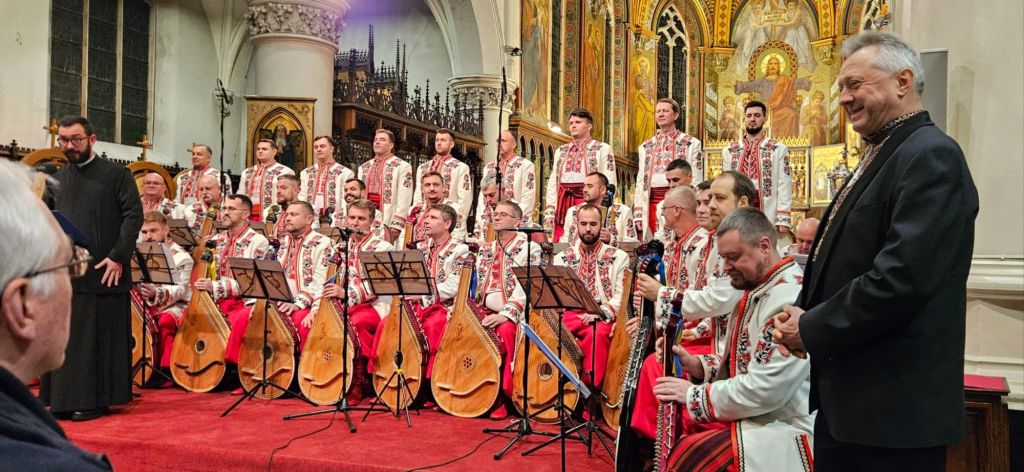 At the end, the choir director spoke to us, and a woman translated into English. Sadly, nine members of the choir were not onstage. They were on the front lines in Ukraine.