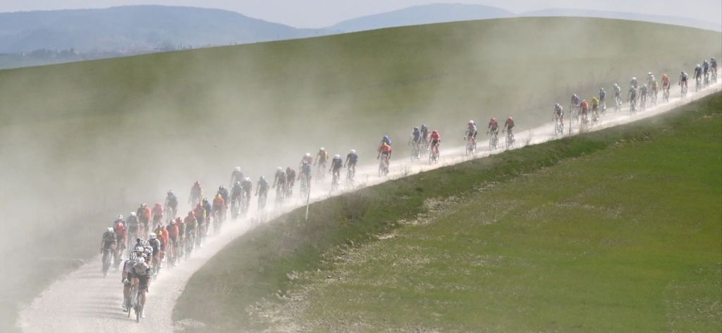 I watched two amazing cycling races on TV yesterday – Strade Bianche women’s and men’s in Italy. “White Roads” … as in gravel.