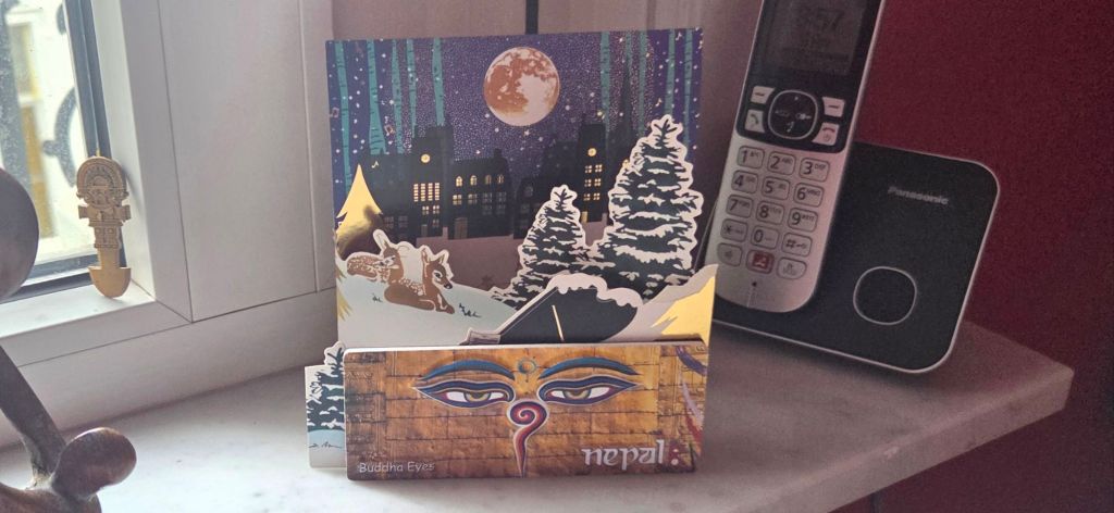 At Christmas, Prabigya gave me a card, and a Nepali fridge magnet showing mysterious eyes … haunting eyes.