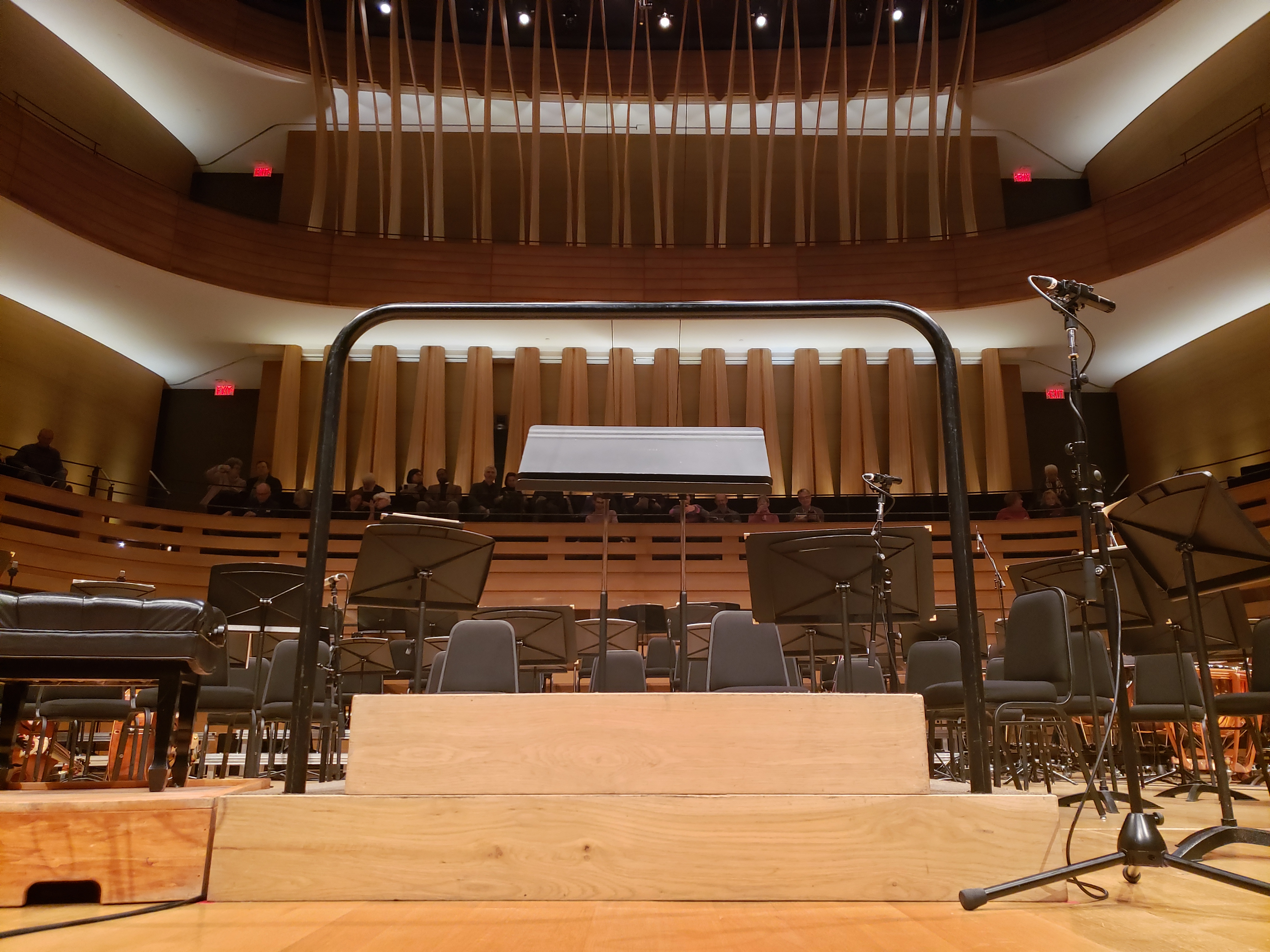 I just walked into the foyer of Koerner Hall, seeking a spot where I could take off my walking boots and put on my dress shoes. Ah ha. There’s a bench with lots of people and a space for me! I sit down and smile at the woman to my right. I’m not sure what her face did in reply. After a minute of me fiddling with laces, she says “Are you here for a rush seat?” > “No, I have my ticket.” > “You’re awfully early for the concert.” > “Well, a few music students are doing a pre-concert at 6:45” …
