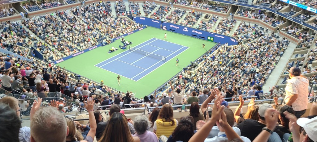 I was enthralled with the speed of the shots, with Leylah throwing her arm to the sky after hitting a winner, drawing the crowd into a massive roar. And we thousands of human beings filled the space with noise.